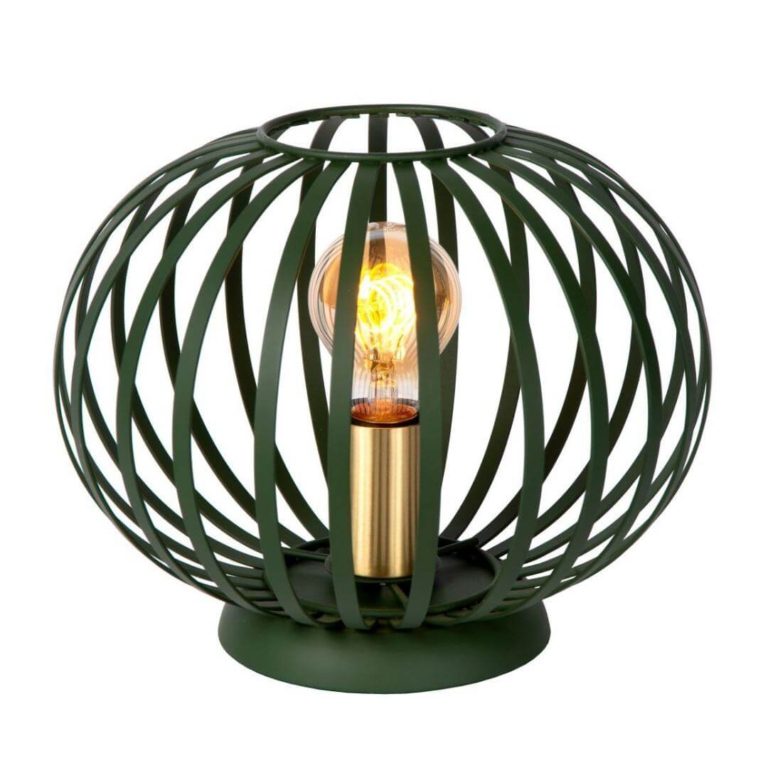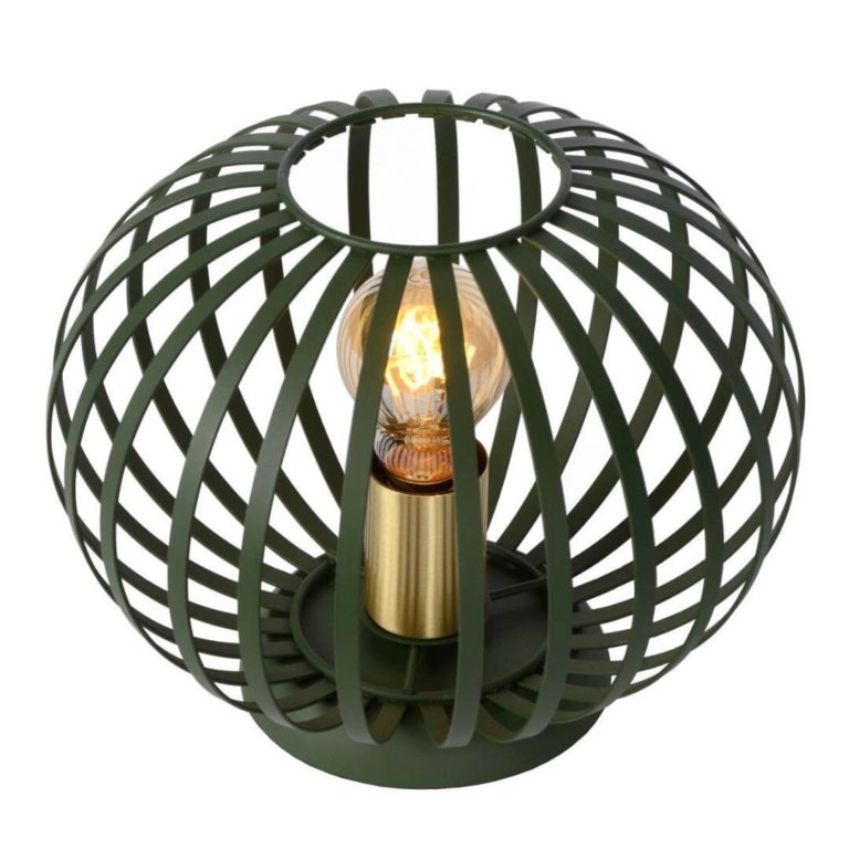 Lampa stołowa w stylu industrialnym Manuela to połączenie surowości z dekoracyjnością. Oferowane oświetlenie wykonane zostało z metalu, a na jego wyjątkowy design składa się nietypowy klosz na podstawce. Przybiera on kulistą formę, układającą się ze specjalnie wygiętych blaszek. Klosz nie osłania źródła światła, a jedynie tworzy ozdobną kompozycję. Klosz ma oryginalny, ciemnozielony kolor. We jego wnętrzu znajduje się miejsce na żarówkę, które wyróżnia się złotym odcieniem.