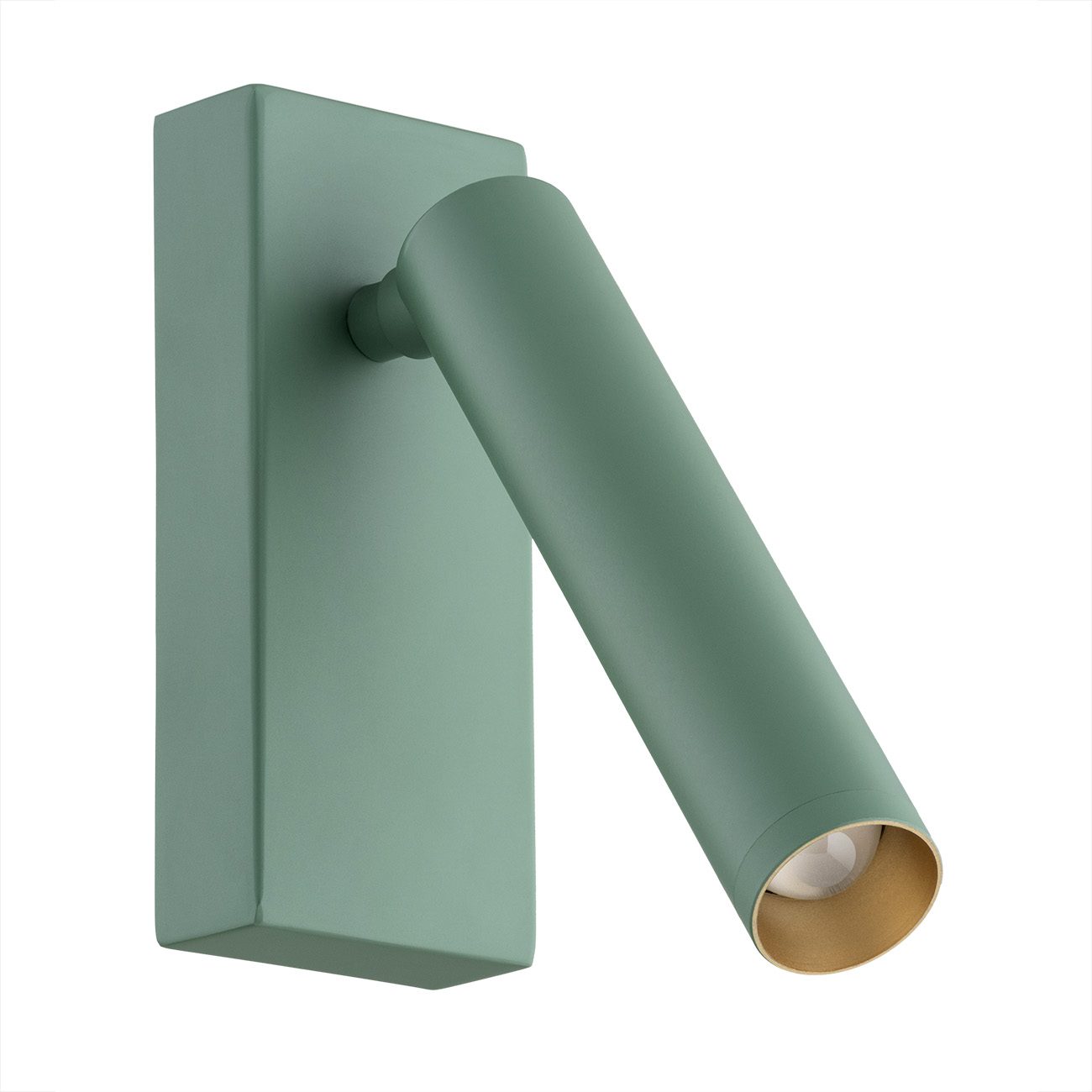 Model składa się z prostokątnego przyściennika i klosza w kształcie tuby, który wyposażony jest w zintegrowany LED o ciepłej barwie. Zielony kinkiet ścienny zapewnia przyjemną atmosferę, a dodatkowo umożliwia zmianę kierunku padania światła. Dzięki zielonej kolorystyce, oprawa doskonale wpisuje się w aktualne trendy i subtelnie zdobi przestrzeń.