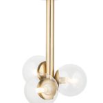 Lampa do sypialni Sunneva 3 składa się z metalowego prostego stelaż w złotym kolorze oraz z trzech szklanych transparentnych kloszy – każdy ma kształt idealnej kuli. Złota lampa sufitowa Sunneva 3 do sypialni ma 33 cm wysokości oraz szerokość/głębokość 22 cm. Przezroczyste klosze doskonale rozpraszają światło, dlatego model ten możesz wykorzystać w roli głównego oświetlenia.