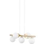 Lampa złota Abi 5 idealnie nadaje się do roli lampy do salonu, jadalni, sypialni, a nawet do biura, hotelu, czy restauracji! Złota lampa wisząca Abi 5 z białymi kloszami przystosowana jest do pięciu żarówek, dzięki którym z łatwością rozjaśnisz każdą przestrzeń!