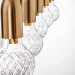 Prezentowana złota lampa wisząca Bani ma pięć punktów świetlnych, które umieszczone są na wygiętym, poziomym stelażu. Nowoczesny żyrandol przymocowany jest do sufitu za pomocą dwóch uchwytów: złotego i transparentnego. Ta prosta, wręcz surowa, kompozycja fantastycznie kontrastuje z eleganckim, złotym kolorem lampy, a także koronkowym zdobieniem szklanych kloszy i plecionym kablem. Uwielbiamy ten kolaż industrialnej stylistyki z artystyczną ekspresją, a Ty?