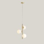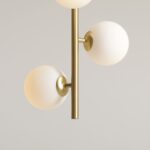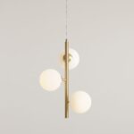 Ta minimalistyczna, ale i efektowna lampa wisząca do kuchni i jadalni doskonale oddaje tendencje współczesnego wnętrzarstwa. Oświetlenie Flott S wyposażone jest w metalowy stelaż w kolorze złotym oraz w trzy mlecznobiałe klosze w kulistym kształcie. Złota lampa wisząca Flott S z białymi kloszami równomiernie rozprasza światło, dzięki czemu może posłużyć nawet jako zamiennik dla żyrandola.