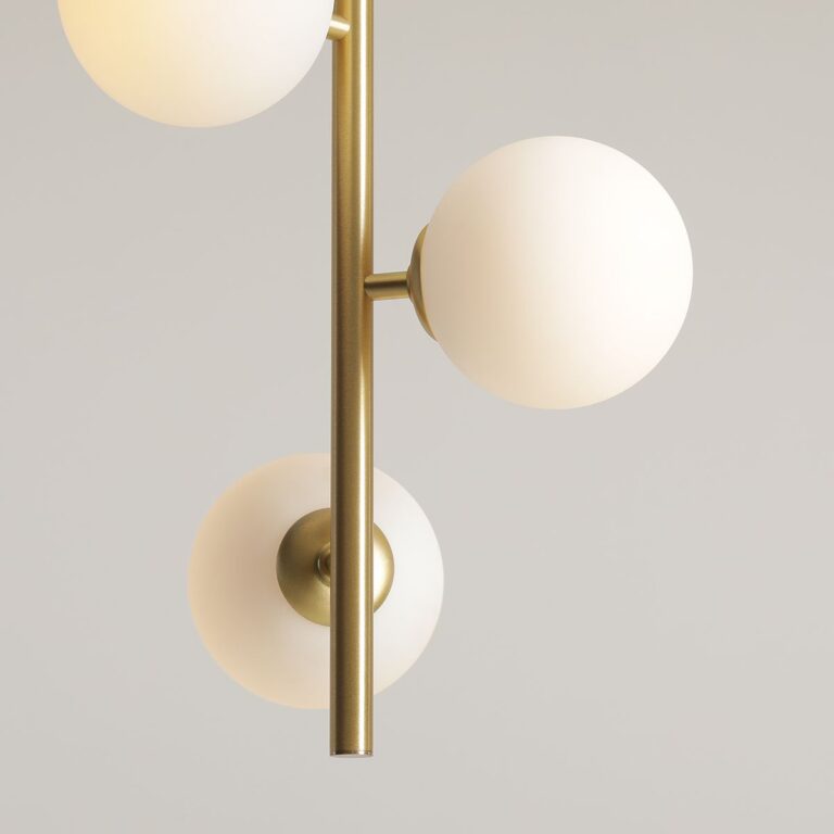 Z jednej strony niezwykle dekoracyjna, z drugiej wyjątkowo funkcjonalna, metalowa lampa wisząca z kulistymi kloszami Flott S tworzy przestrzenną konstrukcję o szerokości i głębokości 34 cm. Oferowane oświetlenie może mieć od 65 do 120 cm – dzięki regulacji samodzielnie dopasujesz jego długość do wysokości pomieszczenia. Ponadto złota lampa wisząca Flott S ze sklepu online Ryssa przeznaczona jest do energooszczędnych ekologicznych żarówek LED.