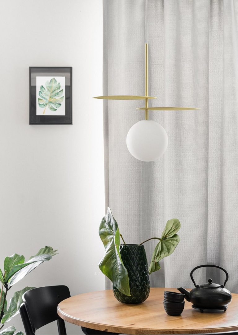 Zaletą pojedynczej lampy salonowej Fyllo jest możliwość regulacji wysokości. Żyrandol zawiesić możesz w odległości od 60 cm do nawet 160 cm od sufitu. W każdej wersji wygląda nieziemsko, zwłaszcza, że średnica mlecznobiałego szklanego klosza wynosi zaledwie 15 cm.