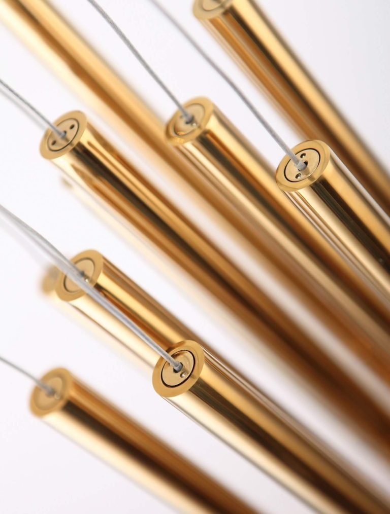 Przyglądając się bliżej Organic Dimmer 37, zauważymy, że ta wisząca lampa wyposażona jest w dwa rodzaje oświetlenie: cztery punkty LED znajdują się na samej podsufitce, natomiast pozostałe źródła światła zamknięte są w widowiskowych kloszach o podłużnym kształcie. Wszystkie długi tuby, podobnie, jak podsufitka, wykonane zostały z wysokiej jakości i trwałej stali nierdzewnej. Omawiana lampa wisząca LED emituje światło o barwie 3000 K. Model ten wyposażony jest również w możliwość kontrolowania poziomu jasności, co doskonale sprawdzi się w sypialni, jadalni lub salonie.