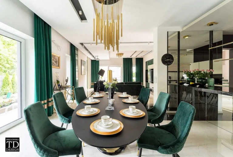 Na koniec kilka słów o kolorze i stylu. Złota lampa glamour Organic Dimmer 37 idealnie komponuje się z wszystkimi eleganckimi aranżacjami. Może to być zarówno nowoczesny, jak i klasyczny wystrój. Kolorystyka oferowanego oświetlenia z regulacją wyjątkowo dobrze prezentuje się na tle jasnych, przestronnych wnętrz, w których złote połyskujące akcenty stanowią stylowy dodatek.