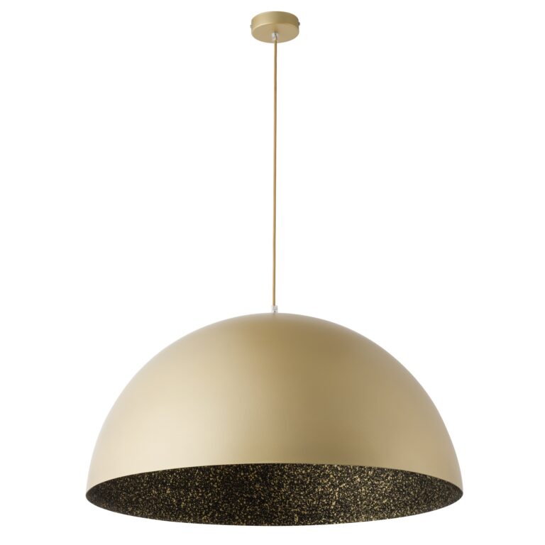 Misa Sewilla ma z zewnątrz kolor złoty, natomiast jej wewnętrzna strona pokryta jest czarną powłoką ze złotymi drobinkami, dzięki czemu subtelnie odbija światło. Czarno-złota kolorystyka jest niezwykle wyrafinowana, a jednocześnie modna. Tego rodzaju pojedyncza lampa wisząca doskonale pasować będzie do wszystkich wnętrz, w których chcesz osiągnąć klimat elegancji. Czerń bardzo dobrze łączyć się będzie z wieloma różnymi kolorami. Jeśli chcesz podkreślić jednak charakter Sewilli zestaw ją z innymi dodatkami w czarnym i złotym kolorze.