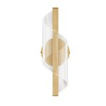 Złoty kinkiet ścienny Huaral w eleganckim designie zachwyca przede wszystkim swoim wyrafinowanym wyglądem. Oferowane oświetlenie wyposażone jest w akrylowy transparentny klosz o falistej formie, który dodaje wnętrzu lekkości i subtelnie rozprasza światło. Dopełnieniem klosza jest metalowy stelaż w klasycznym odcieniu złota.