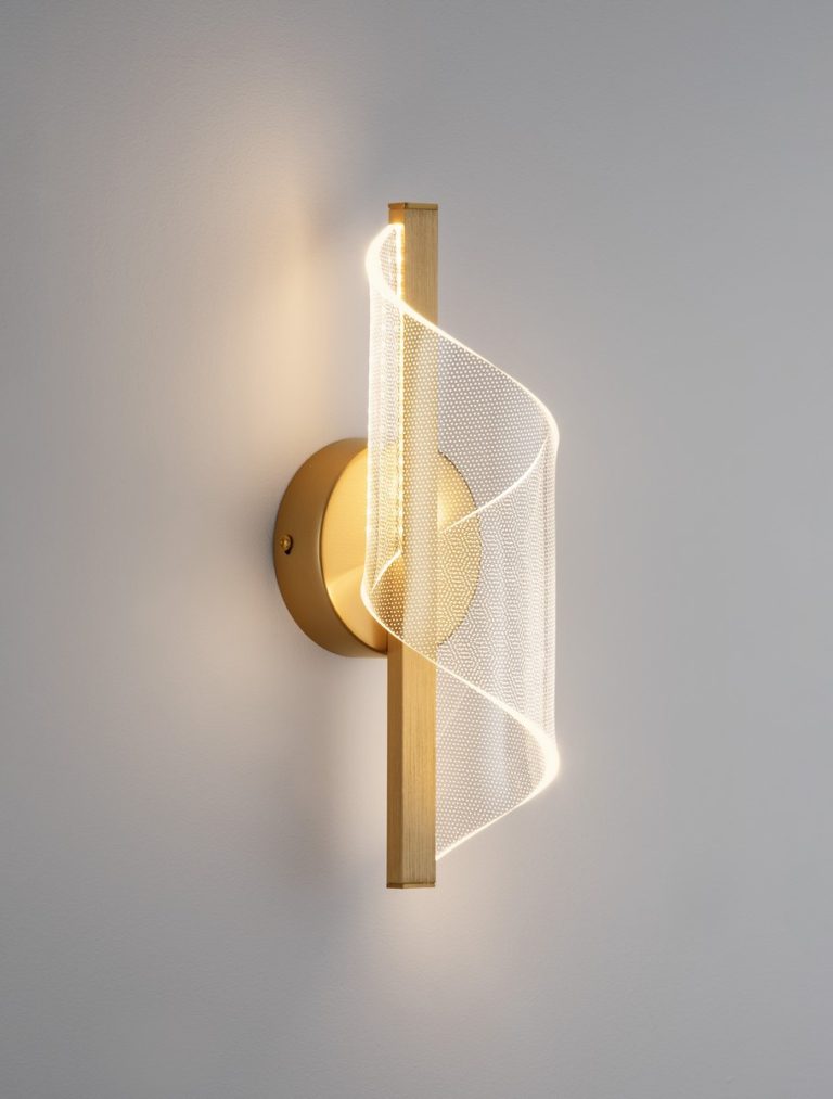 Złoty kinkiet ścienny Huaral w eleganckim designie zachwyca przede wszystkim swoim wyrafinowanym wyglądem. Oferowane oświetlenie wyposażone jest w akrylowy transparentny klosz o falistej formie, który dodaje wnętrzu lekkości i subtelnie rozprasza światło. Dopełnieniem klosza jest metalowy stelaż w klasycznym odcieniu złota.