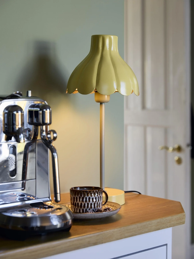 Żółta lampa stołowa Wera z unikatowym kloszem