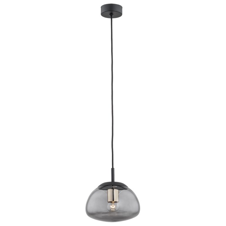 Lampa wisząca do kuchni i jadalni Trini S przykuwa uwagę prostą formą oraz ciemną kolorystyką. Omawiany model składa się z półkolistego klosza wykonanego z barwionego szkła oraz z detali w kolorze czarnym. Zwis z małym przydymianym kloszem Trini S ze sklepu online Ryssa wyjątkowo dobrze pasuje do aranżacji industrialnych i nowoczesnych, wnosząc do wnętrza nastrojowe światło oraz podkreślając charakter całego wystroju.
