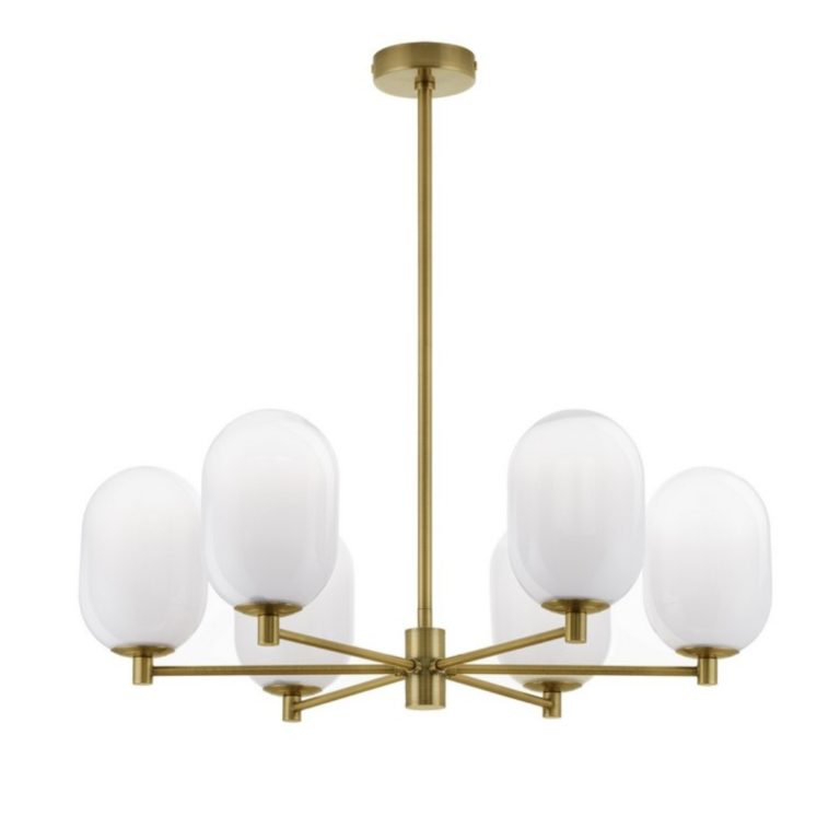 Żyrandol Badesi 6 z mlecznobiałymi owalnymi kloszami