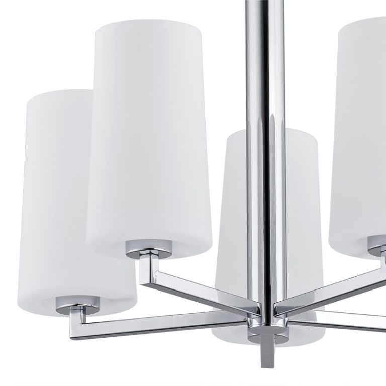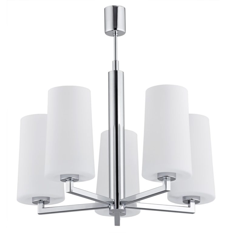Klasyczny żyrandol Camelot 5 składa się z wyjątkowo solidnego stelaża, wykonanego ze stali w kolorze chromu oraz z pięciu szklanych białych kloszy. Zarówno materiały, jak i kolory nadają oferowanej oprawie świetlnej niezwykłej elegancji. Pięcioramienny żyrandol Camelot 5 w klasycznym stylu przepięknie prezentuje się we wszystkich najważniejszych częściach domu – warto go wyeksponować, montując, chociażby nad kompletem wypoczynkowym lub stołem.
