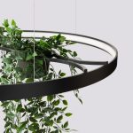 Żyrandol nowoczesny RIO BIO wyróżnia się imponującą średnicę 110 cm, dzięki czemu doskonale sprawdza się w przestronnych pomieszczeniach – na przykład jako lampa do salonu. Jej projekt opiera się na kloszu w kształcie pierścienia, dzięki któremu światło równomiernie się rozchodzi, perfekcyjnie rozjaśniając całą przestrzeń. W klosz wbudowany jest stelaż pełniący rolę kwietnika – idealny do wiszących roślin! Żyrandol LED z uchwytem na roślinę ⌀ 110 cm wyróżnia się również solidnością – model wykonano z trwałego aluminium z dbałością o najmniejsze detale.