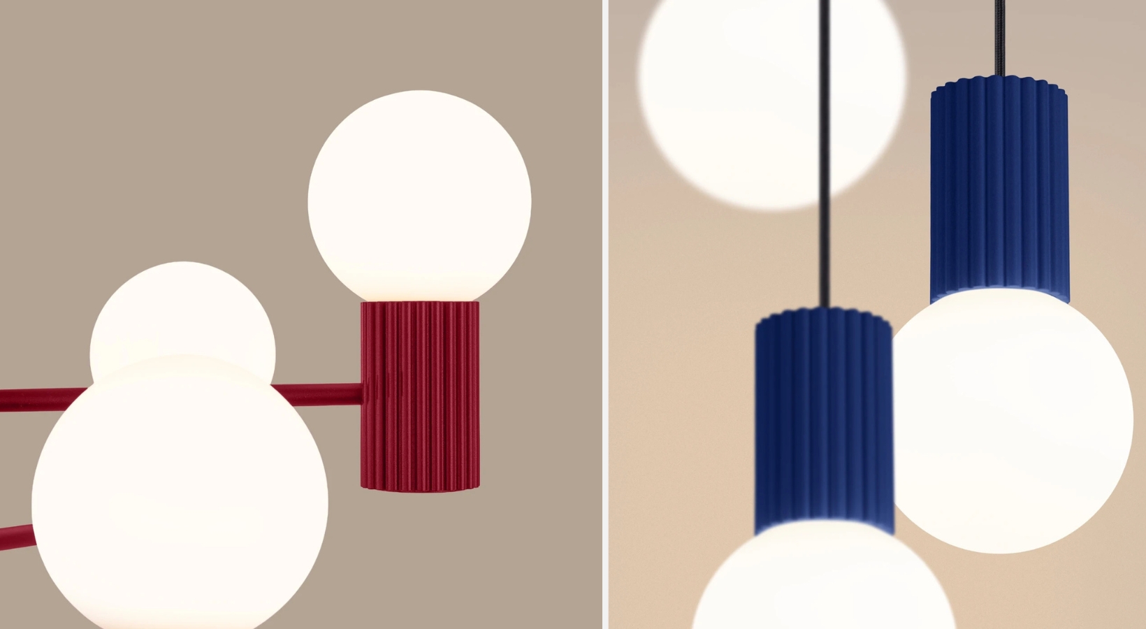 Wprowadzają nie tylko światło, ale też strukturę, emocję i indywidualność. Ich matowe wykończenie podkreśla głębię barw, a karbowane kształty sprawiają, że światło delikatnie się załamuje, tworząc we wnętrzu subtelną grę cieni.
